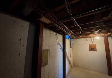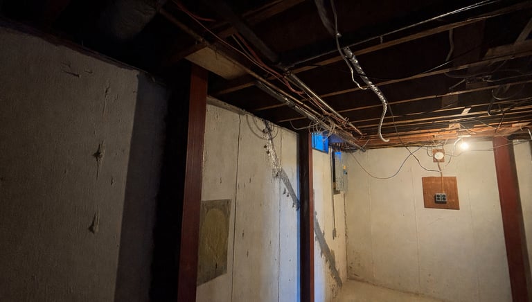 We reinforce bowing or cracked basement walls using engineered support systems such as steel beams to restore structural integrity and prevent further movement.